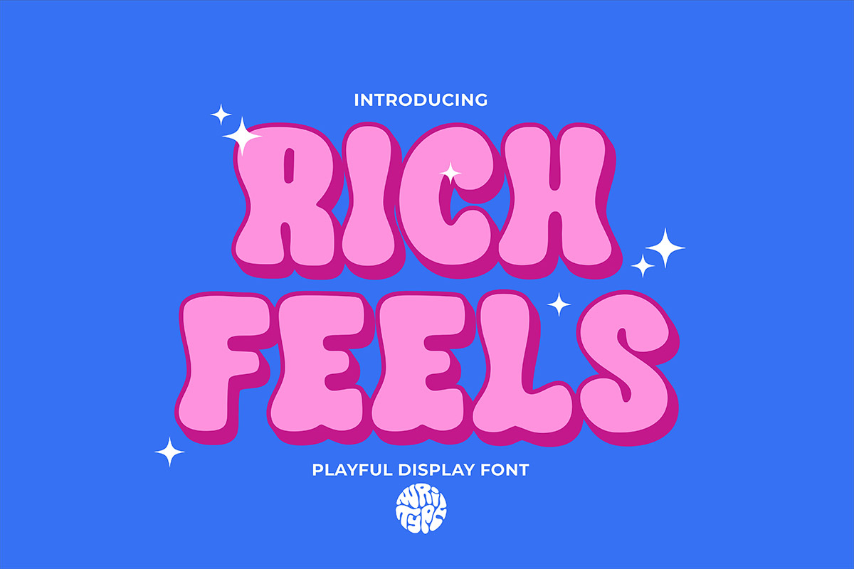 WR Rich Feels Font is a chunky, hand-drawn font with unique curves that add a playful yet bold touch to any design. Perfect for posters, branding, packaging, and headlines, this font stands out effortlessly.